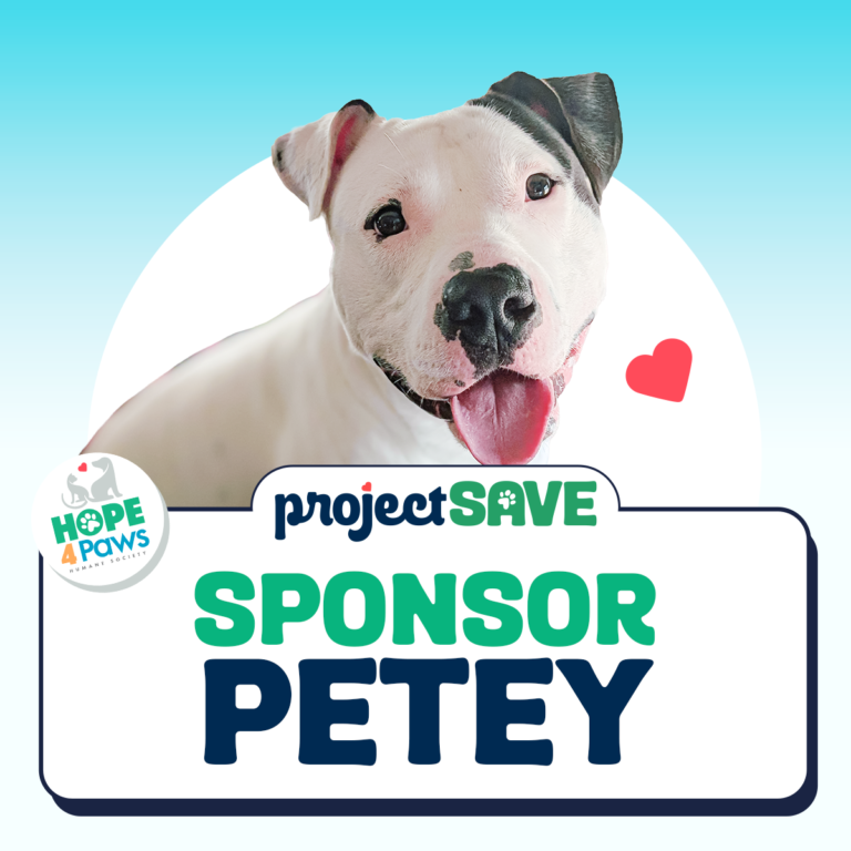 At Hope 4 Paws Humane Society, we are committed to finding loving homes for every animal entrusted to our care. Some pets, however, need a little extra help along the way. Project SAVE exists to provide ongoing care for animals who are older, have medical needs, or require more time and support before finding a permanent home.Your sponsorship directly supports: